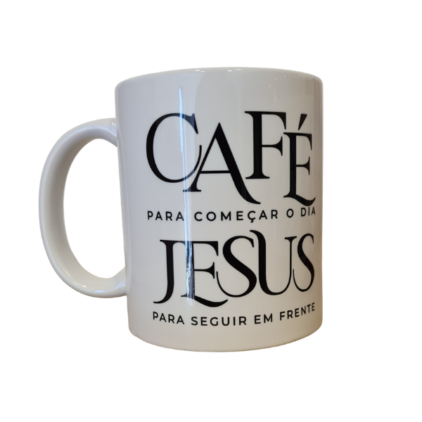 Caneca com a frase “Café para começar o dia, Jesus para seguir em frente”, do Museu Vida de Cristo.