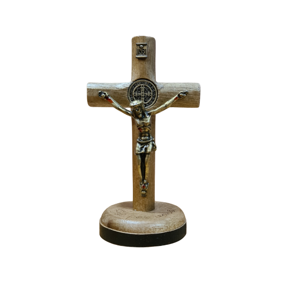 Crucifixo em madeira de 8 cm com as Chagas de Jesus, peça exclusiva do Museu para oração pessoal.