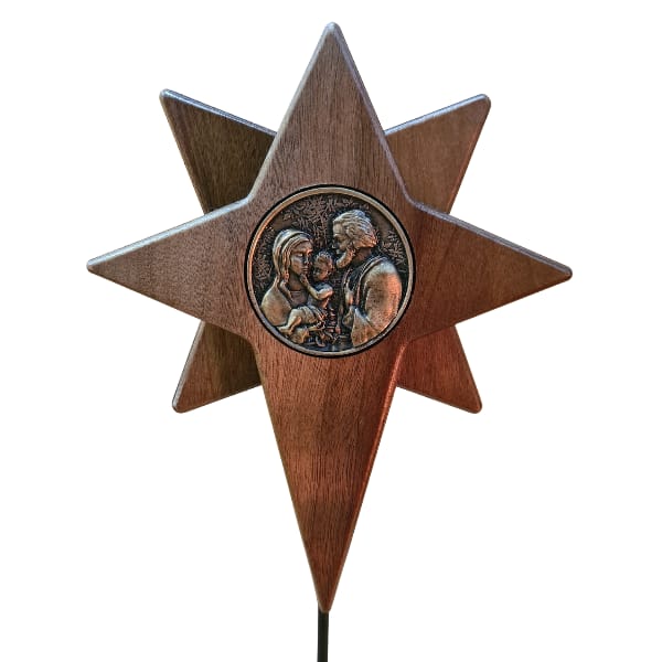 Estrela de Belém em Madeira com Sagrada Família em Metal Ouro Velho