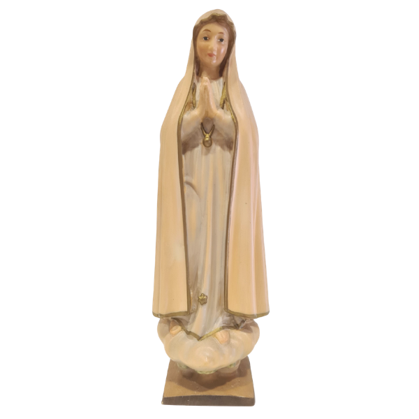 Imagem de Nossa Senhora de Fátima Dolfi, 15 cm, em madeira pintada. Peça artesanal elegante e de elevada qualidade.
