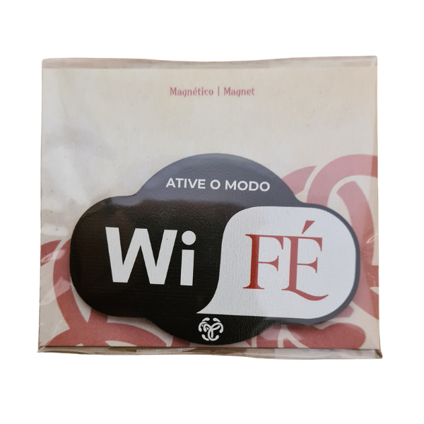 Íman decorativo com a mensagem “Ative o Modo Wi-FÉ”, do Museu Vida de Cristo.