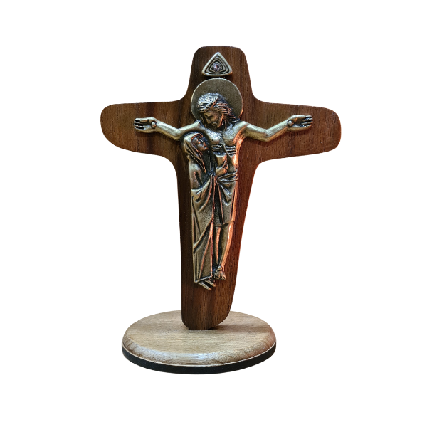 Crucifixo em madeira de 12 cm, peça exclusiva do Museu, ideal para altar pessoal ou espaço de oração.