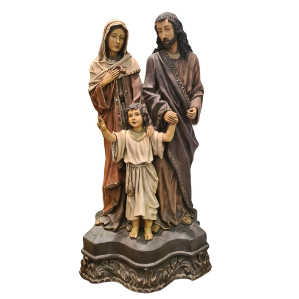 Imagem grande da Sagrada Família (48 x 55 cm), artesanal e detalhada, perfeita para igrejas, capelas ou como peça de devoção em casa.