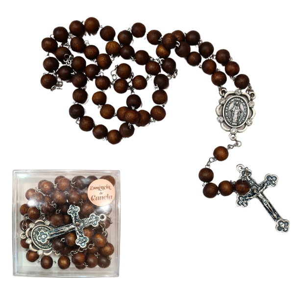 Terço com contas perfumadas com essência de canela. Uma peça devocional com aroma quente e reconfortante.